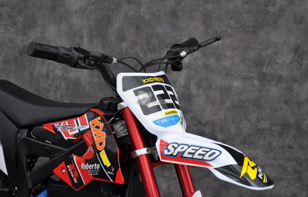 Mini Cross KXD 706E 500W 10/10" elektryczny EKO to cross dla dzieci od 4 do 6 roku życia. Cross posiada hamulce tarczowe oraz osłonę łańcucha, co zapewnia bezpieczeństwo. Dodatkowo wyposażony jest w klakson, stacyjkę, wskaźnik naładowania baterii. Cross dzięki felgą w kolorze plastików idealnie wkomponuje się w wymagania najmłodszych. Kupując pojazd otrzymasz do niego ładowarkę oraz zestaw kluczy. Przez zastosowany w nim elektryczny silnik, jazda takim pojazdem jest niezwykle cicha i bezzapachowa, więc szczególnie polecamy ten pojazd jeśli masz uciążliwych sąsiadów, twoje dziecko boi się głośnych zabaw lub obfitych w spaliny jak w przypadku mini crossów 2T.
