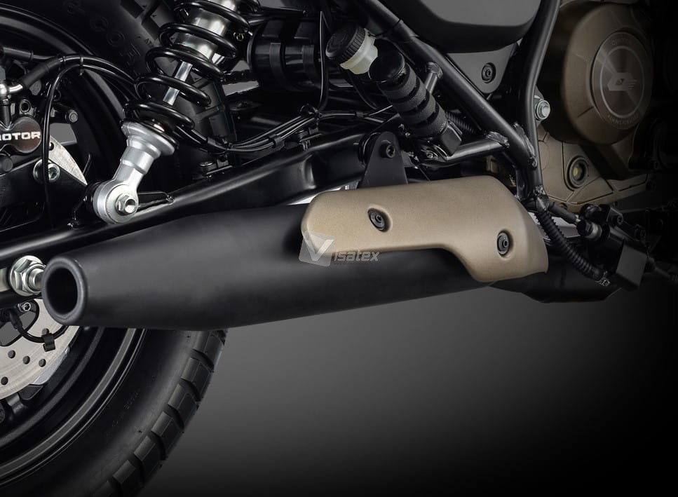 Klasyczny wydech nie tylko uzupełnia atrakcyjny wygląd motocykla, ale także oferuje świetny dźwięk, podkreślający charakter sportowy i dynamiczny tego modelu.
