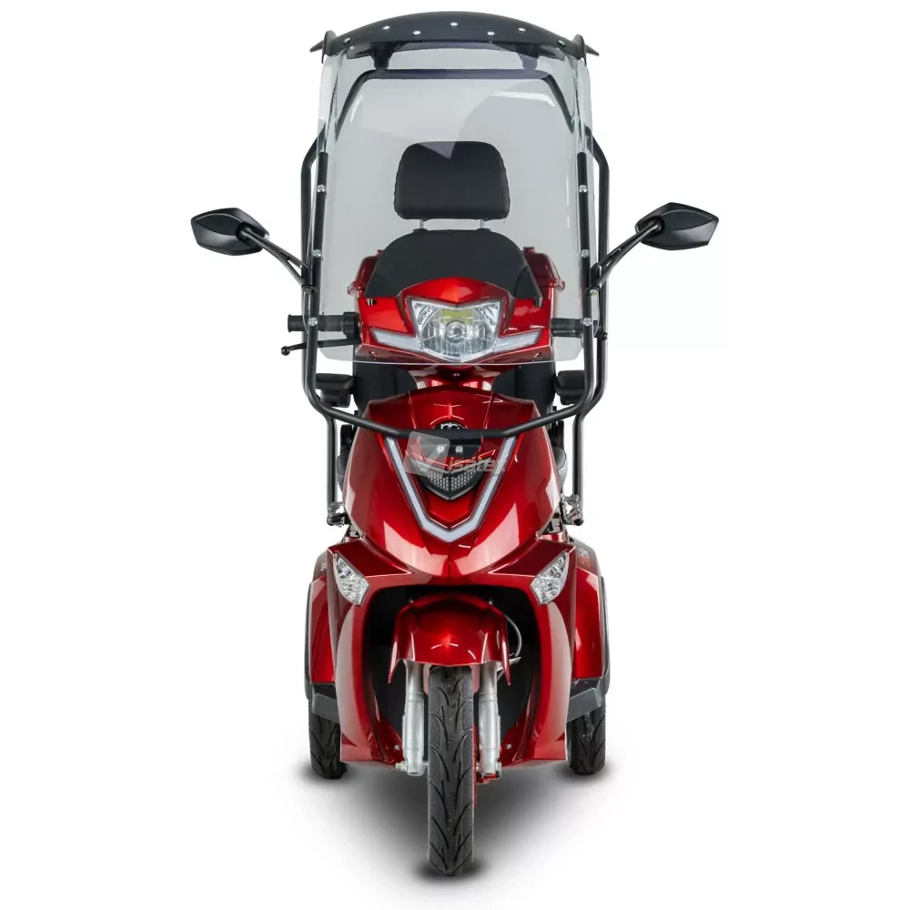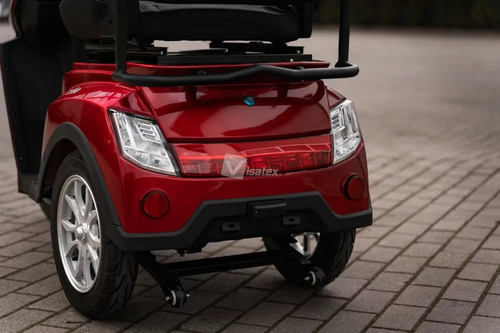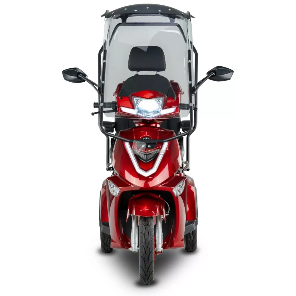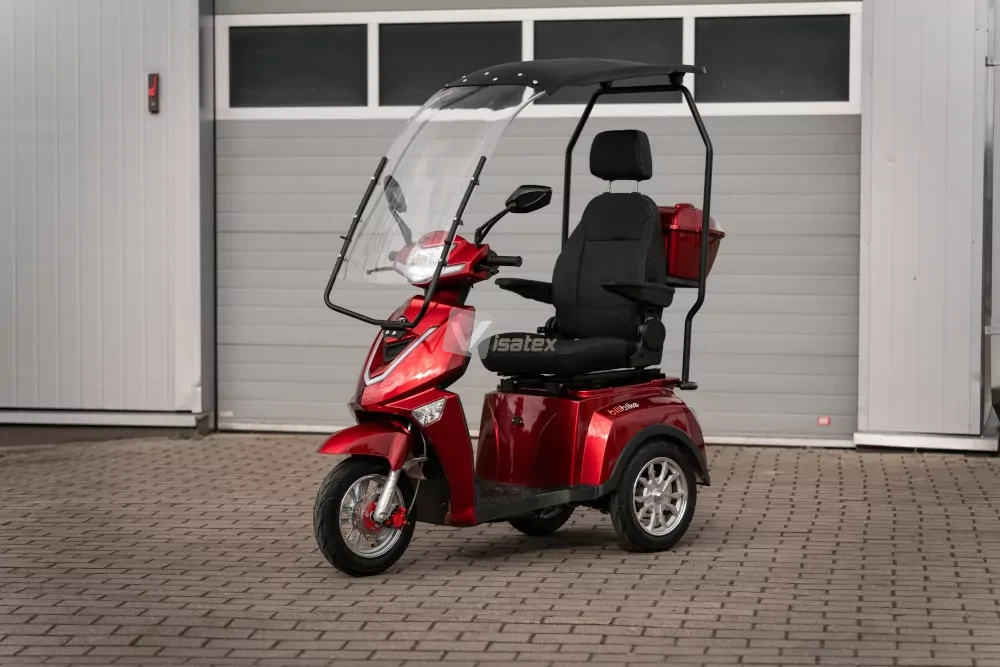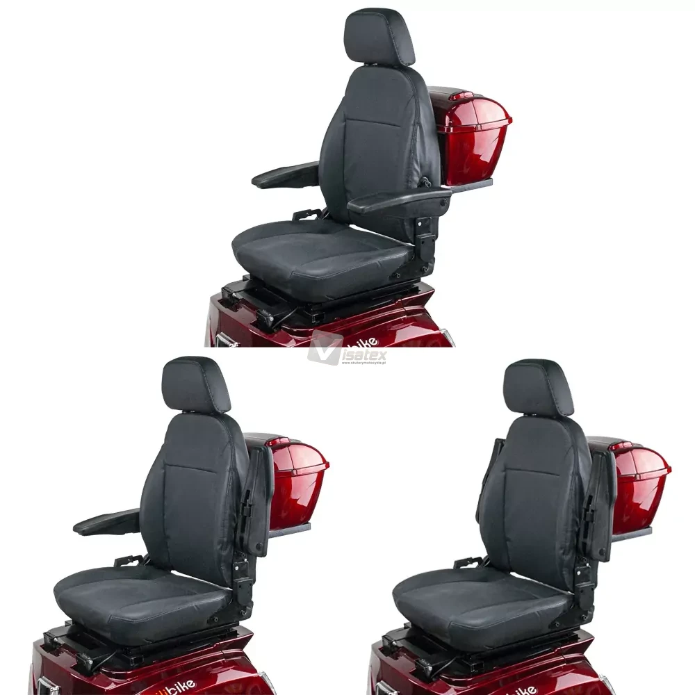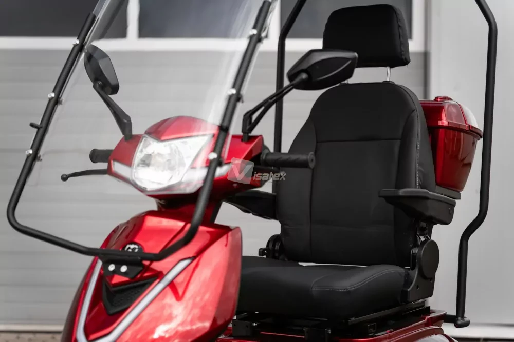 SHINO G4 z dachem to trójkołowy pojazd elektryczny stworzony z myślą o użytkownikach potrzebujących wygodnego i stabilnego środka transportu. Wyposażony w liczne udogodnienia, jak odchylane podłokietniki i wygodny, wysoki fotel z regulowanym zagłówkiem oraz siedziskiem, zapewnia komfort i bezpieczeństwo. Skuter jest idealnym rozwiązaniem dla osób starszych, z niepełnosprawnościami, problemami z poruszaniem się oraz osób otyłych, umożliwiając im niezależne i samodzielne poruszanie się.