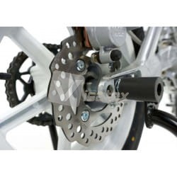 W MRF 160-R nie brakuje elementów, które zapewniają bezpieczeństwo i trwałość. Hydrauliczne hamulce z miedzianymi klockami gwarantują mocne i skuteczne hamowanie. Crash pady na osiach kół oraz nakładki na podnóżki chronią motocykl przed uszkodzeniami w razie upadku. Dodatkowo, kierownica typu fatbar i odlewane aluminiowe felgi SM z oponami do jazdy po asfalcie podkreślają wyścigowy charakter tego modelu.
