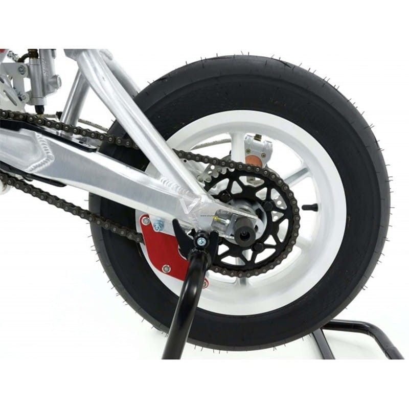 Zawieszenie MRF 160-R to kluczowy element wyścigowego sukcesu. Zarówno przedni widelec, jak i tylny amortyzator DNM 280 ze zbiorniczkiem mają regulację odbicia i kompresji. To pozwala dostosować motocykl do własnej wagi i stylu jazdy, co jest niezwykle istotne na torze.