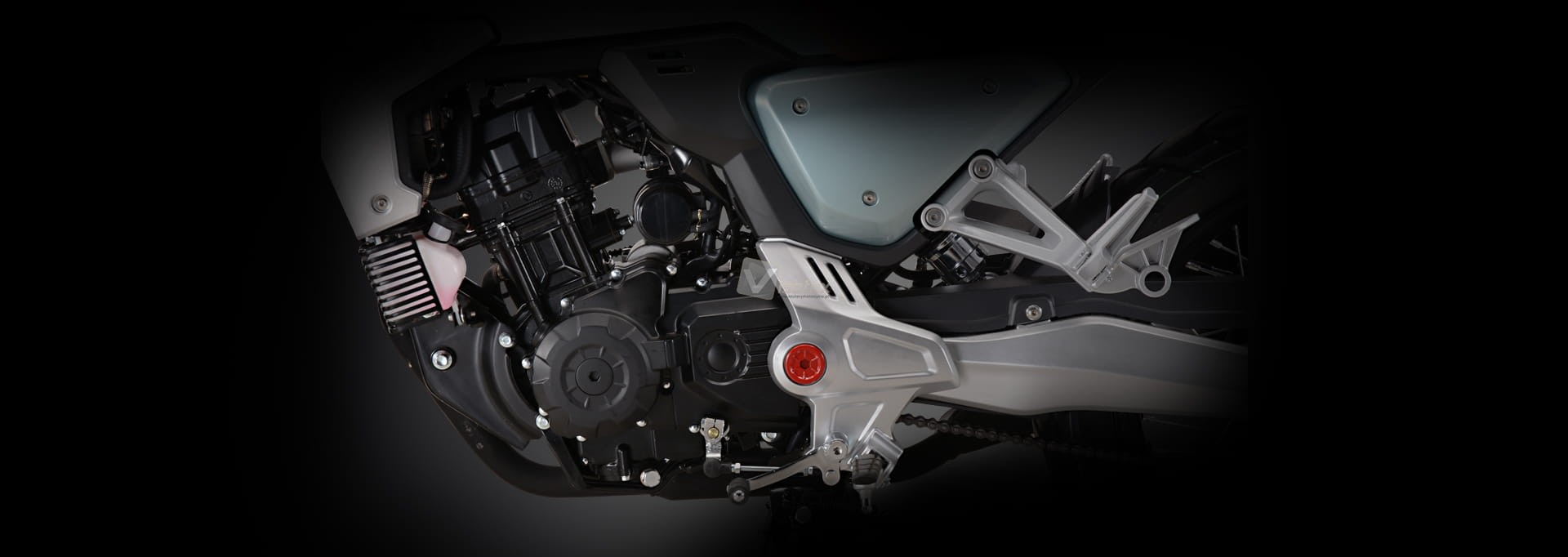 - Zaawansowany silnik: ROCKSTAR 125 jest napędzany jednocylindrowym, czterozaworowym silnikiem chłodzonym cieczą o pojemności 125 cm³. Silnik generuje moc 14 KM przy 9500 obr./min oraz moment obrotowy 11.2 Nm przy 7000 obr./min. Dzięki technologii EFI BOSCH, silnik zapewnia nie tylko moc, ale również oszczędność paliwa rzędu 2.3 L / 100 km (WMTC3).