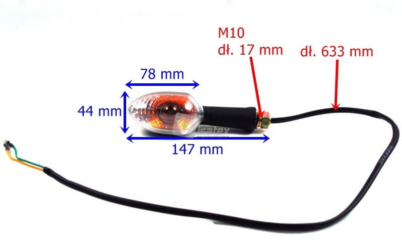 - długość całkowita przewodów kierunkowskazu: 633 mm