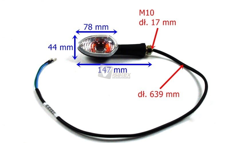- długość całkowita przewodów kierunkowskazu: 639 mm