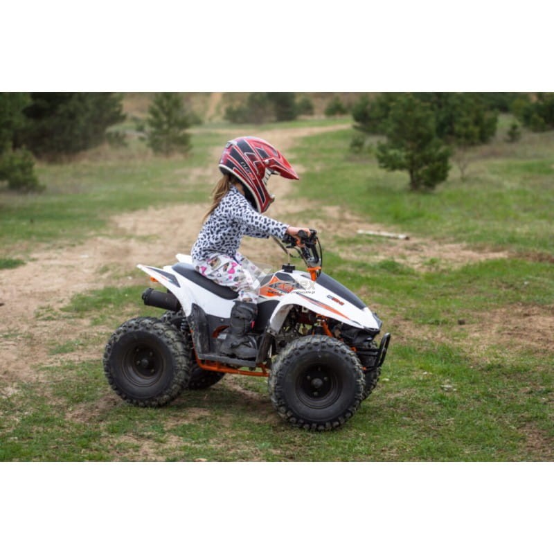 - Quad jest specjalnie przystosowany do potrzeb najmłodszych, co ułatwia naukę jazdy.