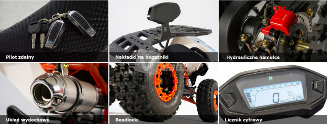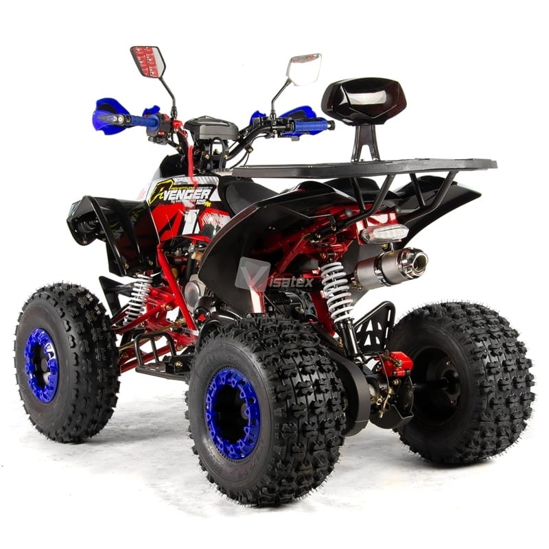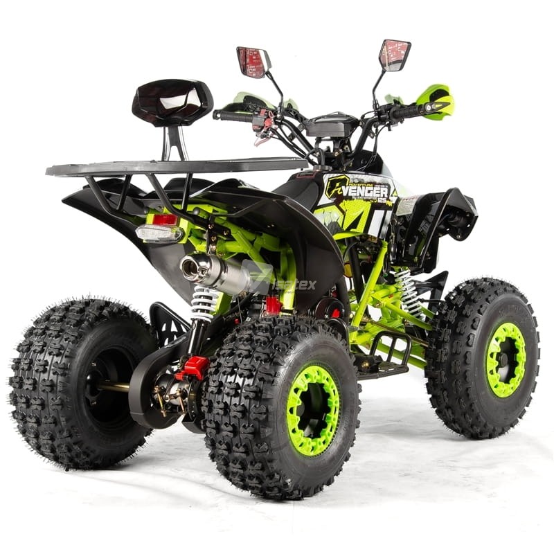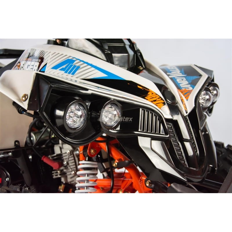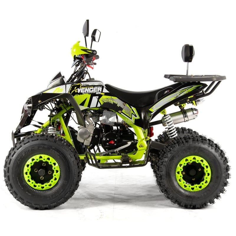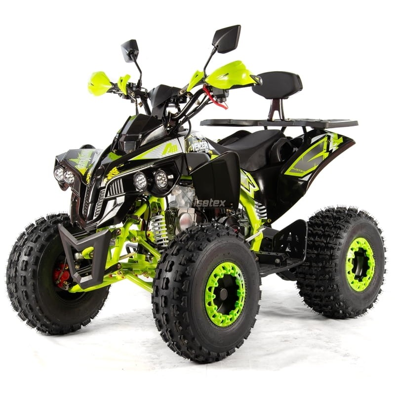 Quad Apollo Avenger 125 to idealna propozycja dla twojego dziecka. Nieduże rozmiary i prosta obsługa to jego największe atuty. Quad wyposażony jest w niezawodny czterosuwowy silnik i wzmocnioną ramę. Napęd przenoszony jest na tylną oś przez półautomatyczną skrzynię biegów. Na wyposażeniu znajdziemy również starter elektryczny oraz oświetlenie LED, osłony na dłonie i obrotomierz.