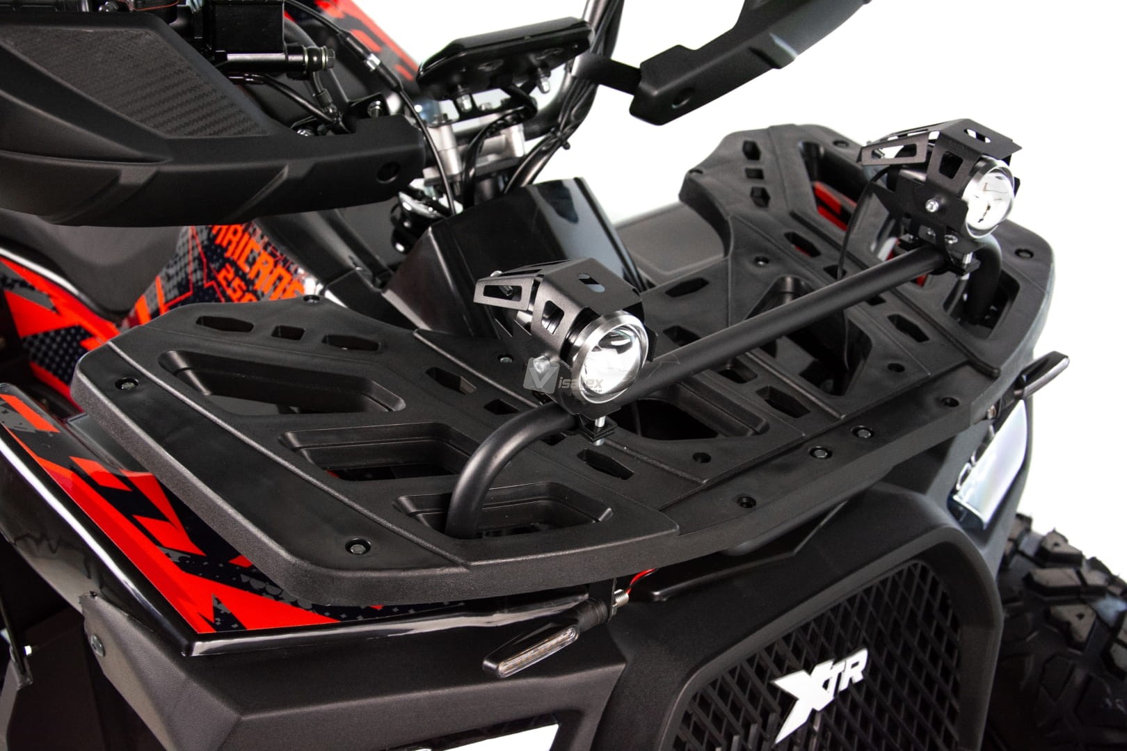 Quad XTR HURRICANE 250cm³ jest bogato wyposażony w szereg funkcji i akcesoriów, które podnoszą komfort jazdy i funkcjonalność pojazdu. Elektryczny rozruch ułatwia szybkie uruchamianie quada, a cyfrowy licznik oraz motogodzin zapewniają precyzyjny monitoring parametrów pojazdu. Model ten jest również wyposażony w solidne handbary, które chronią ręce kierowcy przed gałęziami i kamieniami podczas jazdy w trudnym terenie.
