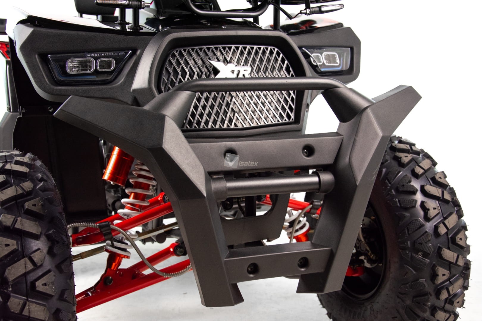 Quad wyposażony jest w hydrauliczne hamulce tarczowe zarówno z przodu, jak i z tyłu, co zapewnia niezawodną i skuteczną siłę hamowania w każdych warunkach. Hydrauliczne hamulce tarczowe zapewniają doskonałą kontrolę nad pojazdem, zwiększając bezpieczeństwo użytkownika. Pełne oświetlenie LED poprawia widoczność i bezpieczeństwo podczas jazdy nocą lub w trudnych warunkach pogodowych.