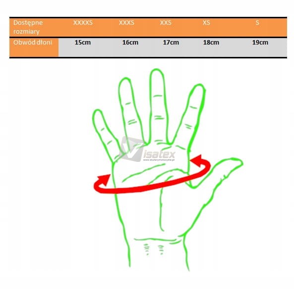 Pamiętaj aby przed zakupem zmierzyć obwód dłoni ! Unikniemy w ten sposób niepotrzebnych zwrotów :)