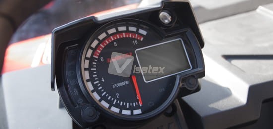 - Wyświetlacz LCD: Wielofunkcyjny, podświetlany na niebiesko wyświetlacz LCD z cyfrowym obrotomierzem, prędkościomierzem, wskaźnikiem przejechanych km, wskaźnikiem motogodzin, kontrolką napędu 2x4/4x4, wskaźnikiem temperatury płynu chłodzącego, cyfrowym wskaźnikiem poziomu paliwa, kontrolką biegu neutralnego, kontrolką świateł dziennych, kierunkowskazów oraz biegu wstecz.