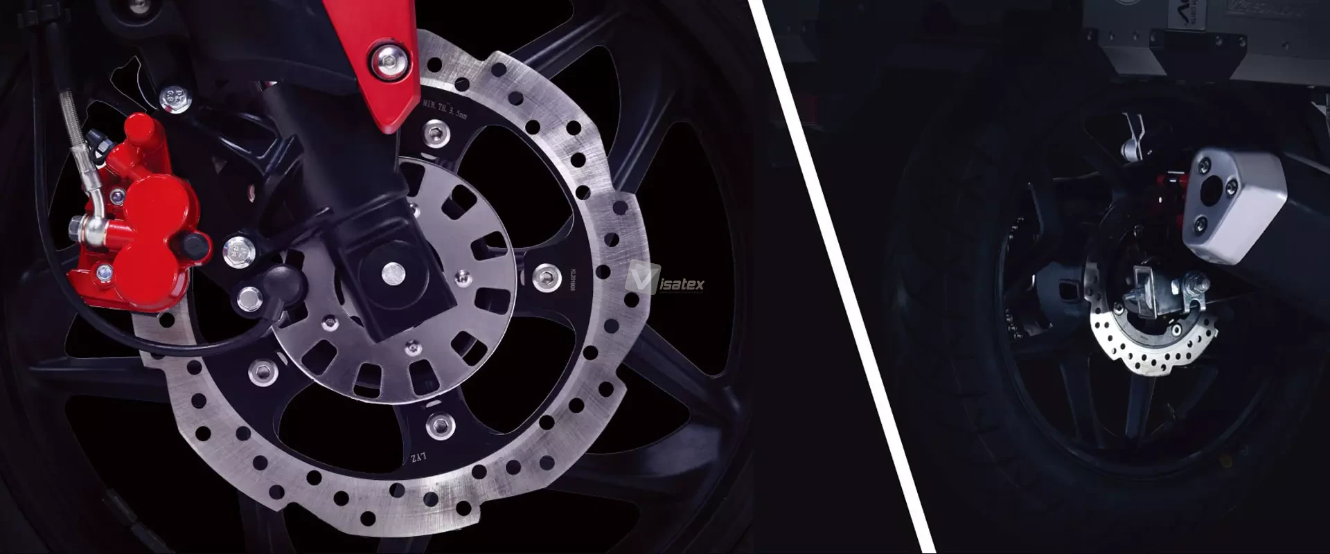 - Dwukanałowym ABS, hamulcami tarczowymi (przód Ø 276 mm, tył Ø 220 mm), zapewniającymi bezpieczeństwo w każdych warunkach.