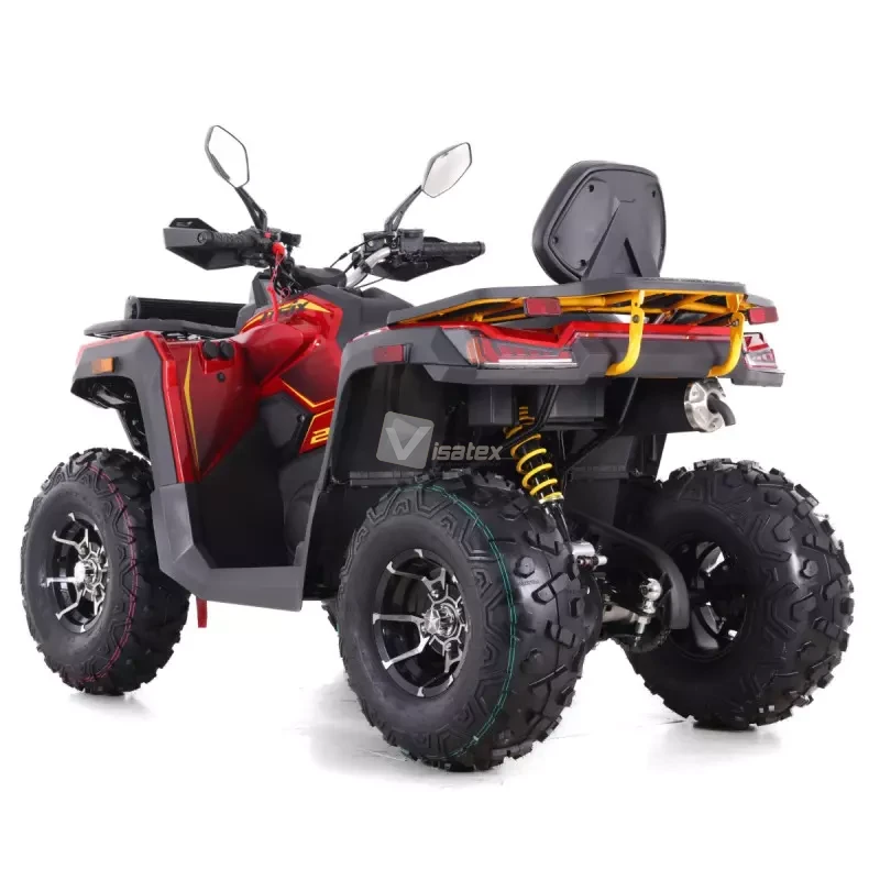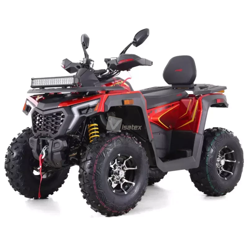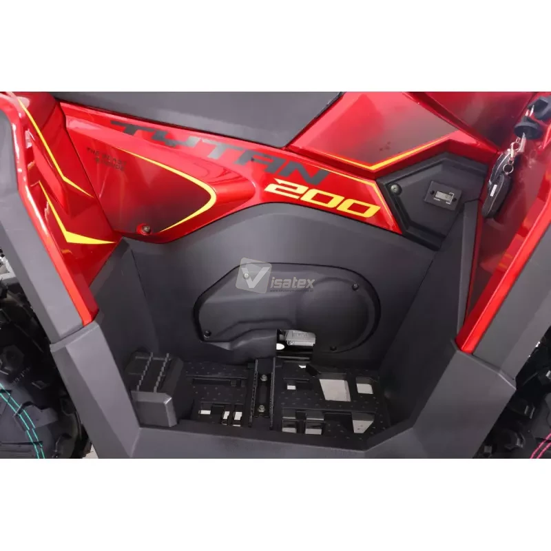 Model Tytan 200RR zapewnia nie tylko moc, ale i komfort dzięki automatycznej skrzyni biegów z biegiem wstecznym (konfiguracja 1+1). Maksymalne obciążenie quada wynosi do 160 kg. Pojazd ten wyróżnia się niezwykle bogatym wyposażeniem dodatkowym, które zwiększa bezpieczeństwo i użyteczność. Standardowo na pokładzie znajdują się takie elementy jak pełne oświetlenie LED z panelem LED, duży cyfrowy wyświetlacz, a nawet praktyczne udogodnienia, takie jak podgrzewane manetki oraz gniazda USB i zapalniczki. Za skuteczne hamowanie odpowiadają hydrauliczne hamulce tarczowe, zarówno z przodu, jak i z tyłu.