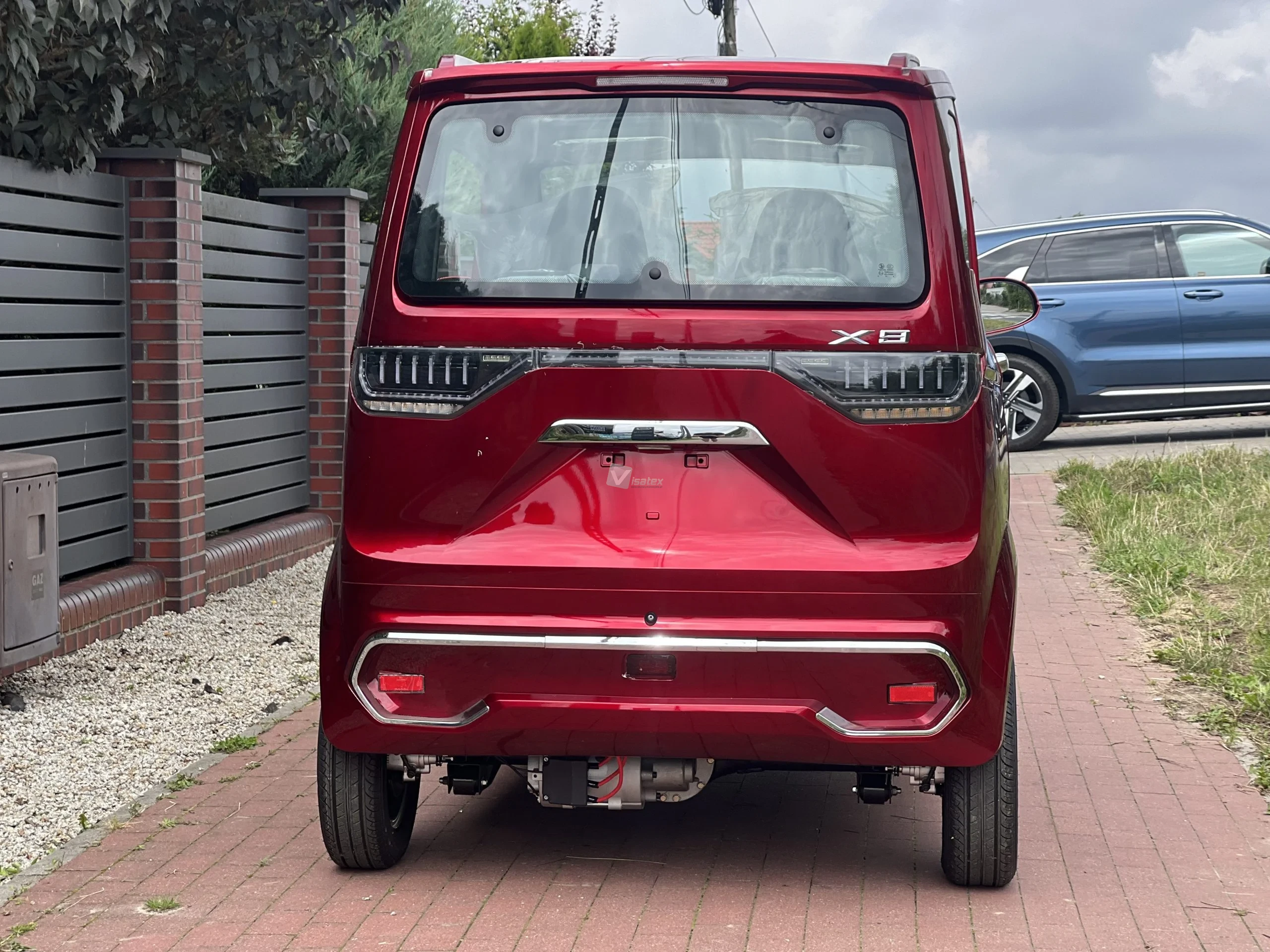 Model X9 został zaprojektowany jako całoroczna alternatywa dla tradycyjnego transportu miejskiego. To dwuosobowy pojazd (pasażer siedzi za kierowcą), który dzięki swojej szerokości pozwala na sprawne manewrowanie tam, gdzie zwykłe samochody stoją w korkach. Kluczowym wyróżnikiem X9 jest bogate wyposażenie standardowe, które obejmuje nie tylko ogrzewanie i elektryczne szyby, ale także szyberdach oraz uchylną tylną szybę, co zapewnia doskonałą wentylację w upalne dni.